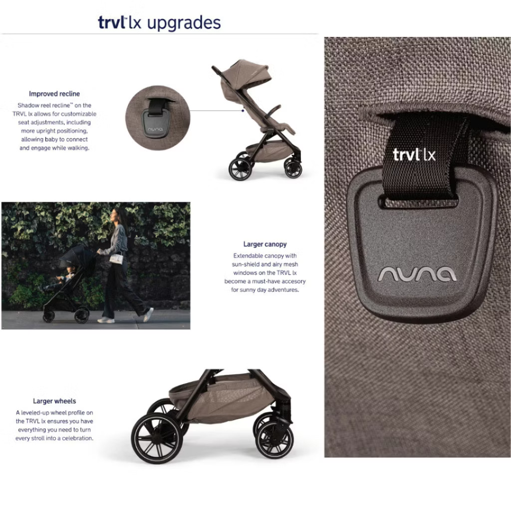 The TRVL lx stroller presents you with the compact freedom you need to get out and about, regardless of how near or far the journey leads. It’s designed to never weigh you down and has a one-handed fold that redefines what you’ve previously known about moving through your day with grace and ease. With its leveled-up wheel profile, you’re ready to navigate whatever the road ahead has in store.